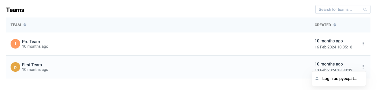 Admins have the ability to temporarily log in as a team member for troubleshooting and management purposes.