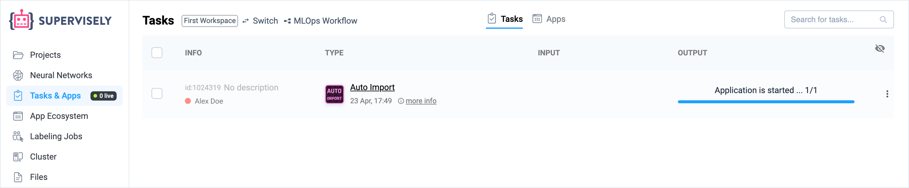 Right after uploading your data, you'll be taken to the **Tasks** page, where you can monitor the upload process.