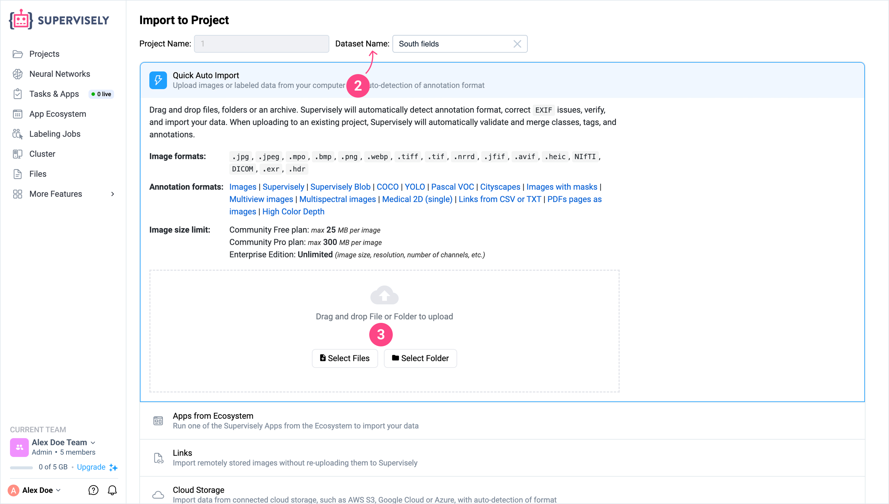 3. Supervisely will now offer you the option to use the **Quick Auto Import** feature.\