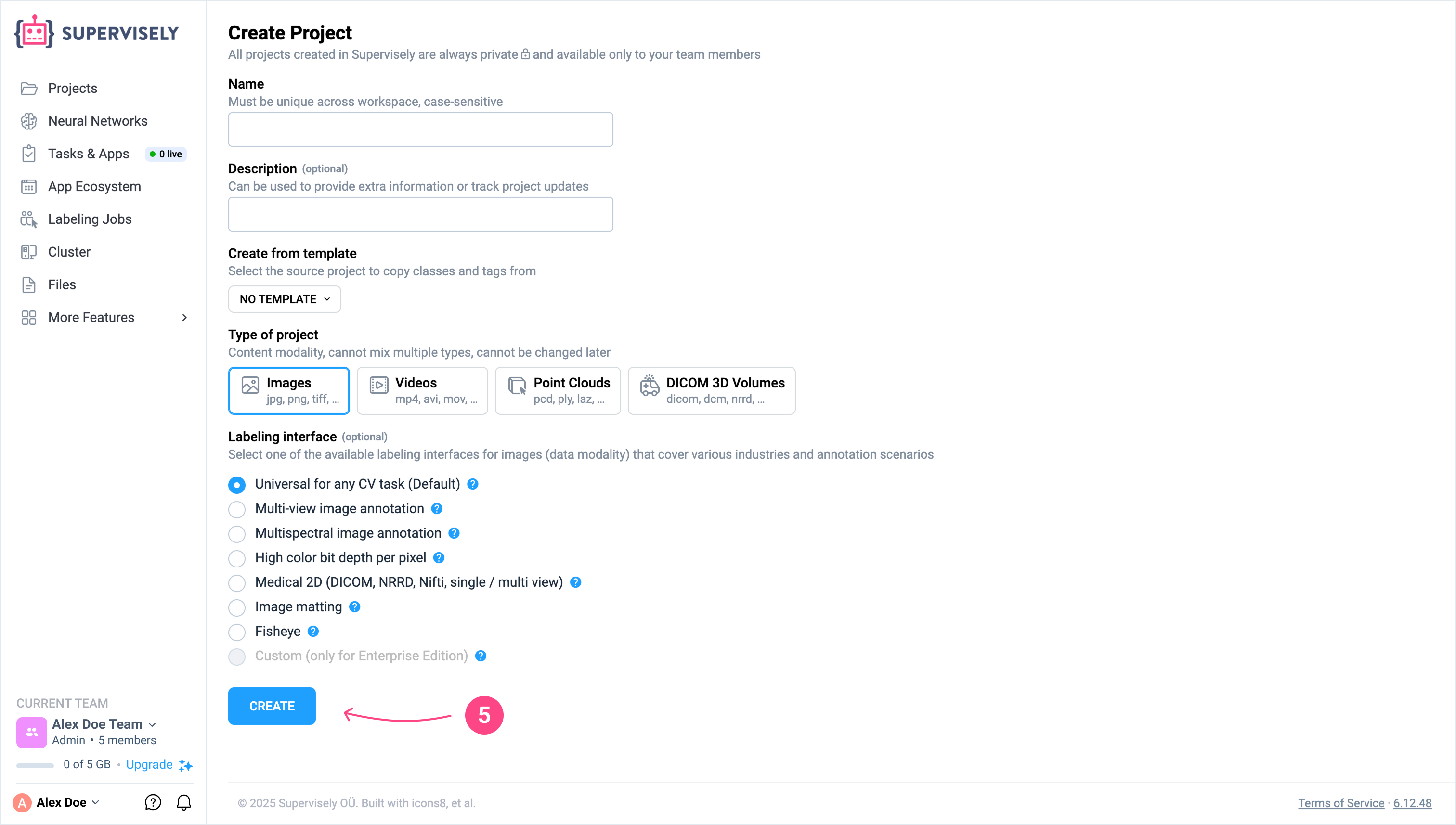 5. Supervisely supports different project types depending on the kind of data you're working with: