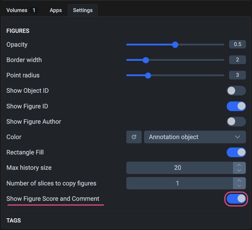 After enabling this option and uploading the NIfTI files with scores, you will see the scores and comments in the Labeling Toolbox.