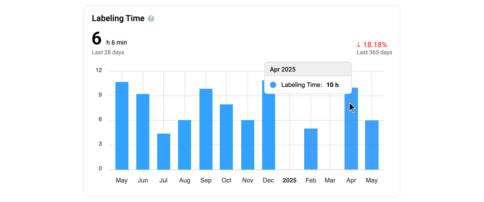 Helps understand how much real, productive time the team spends on annotation (limited to shape creation/editing), not just how long the interface was open.