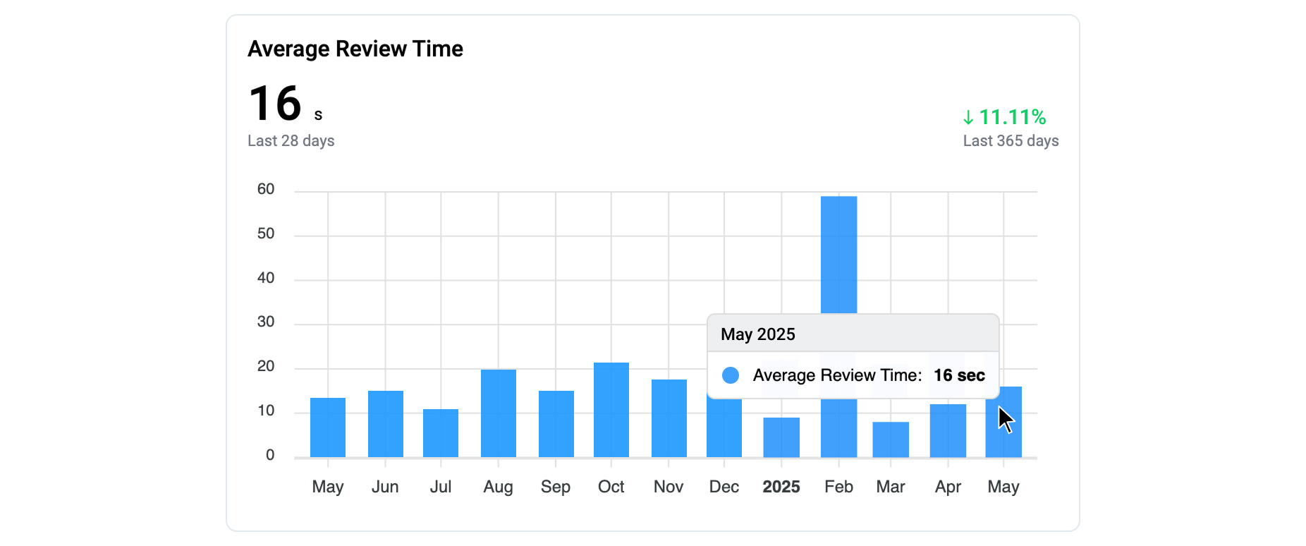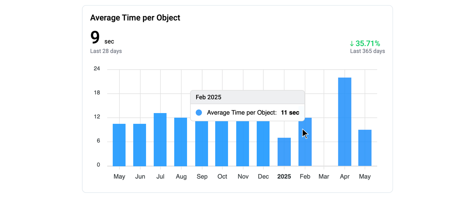 This metric reflects the **average amount of active time** a reviewer spent evaluating each asset - including actions such as opening the asset, viewing the annotations, and accepting or rejecting them.