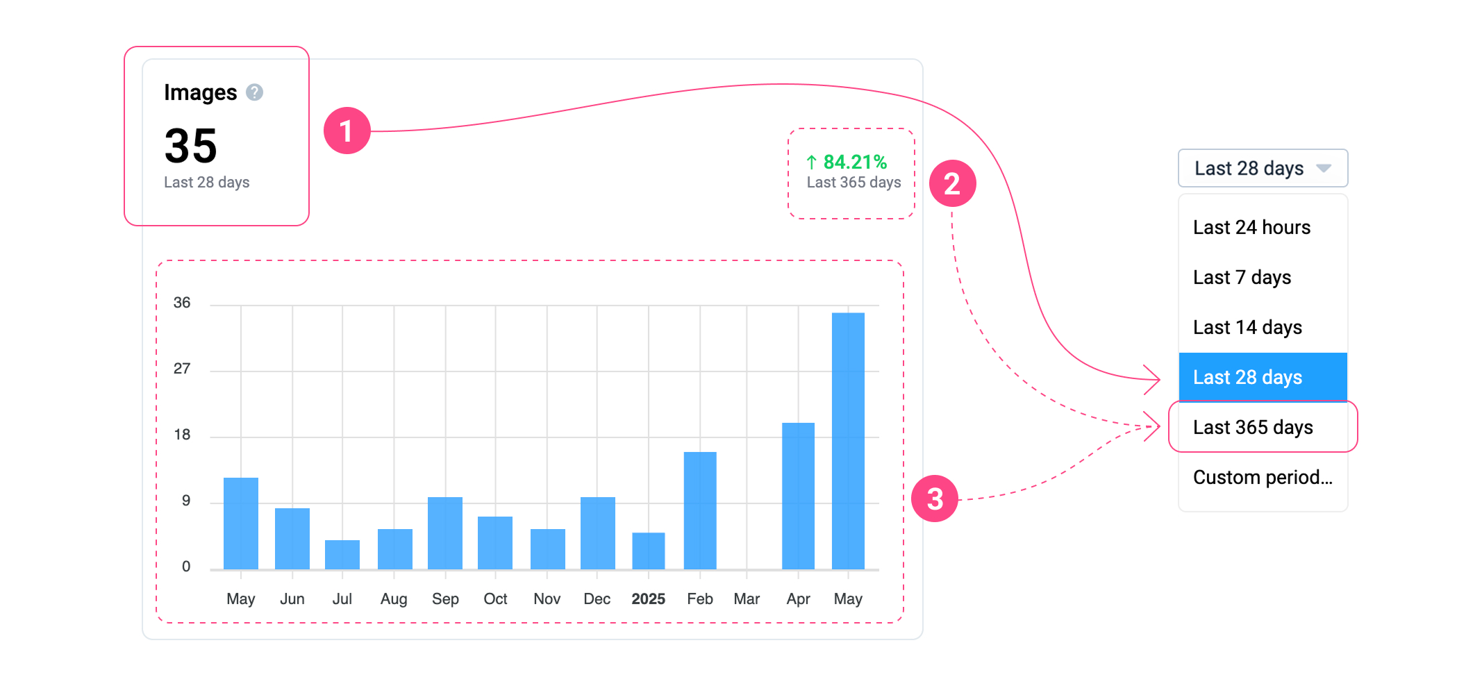 1. The **large number** at the top displays the **total number of annotated items** (such as assets, objects, or actions) based on the selected time filter.