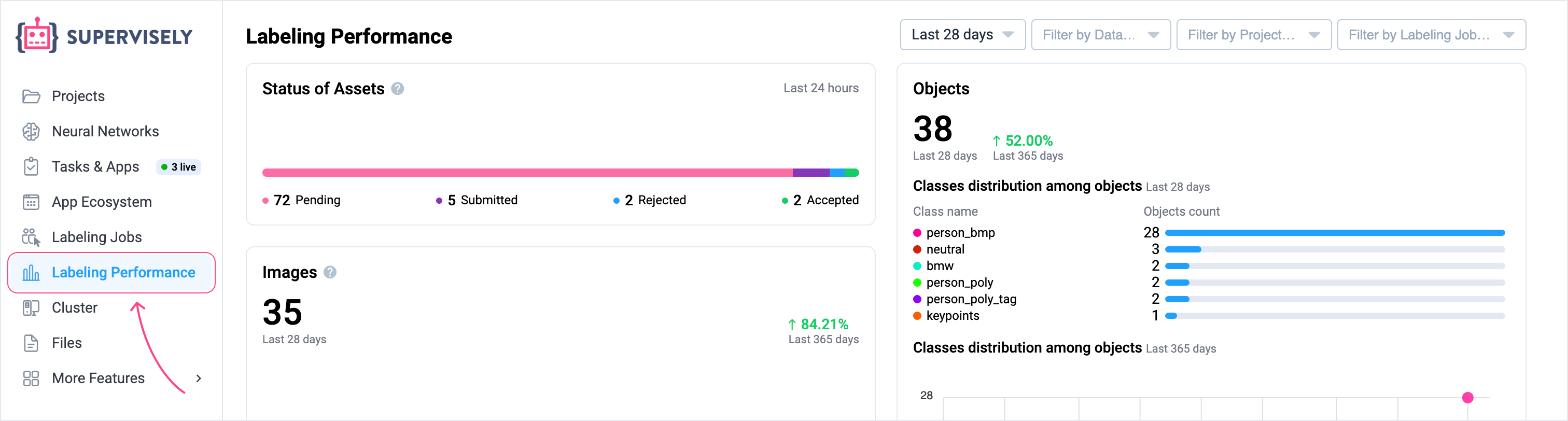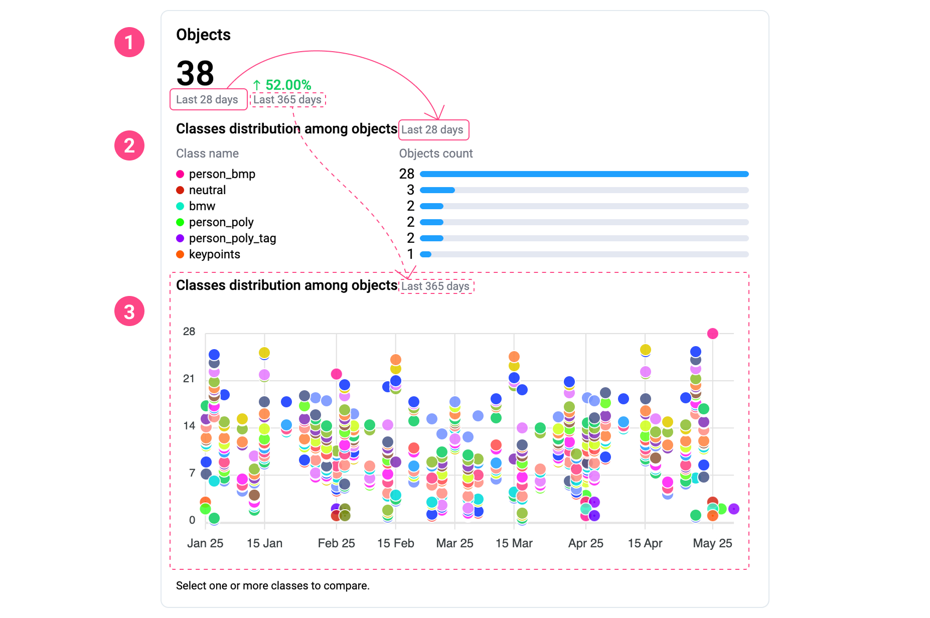 * **Objects** – The total number of objects assigned to this class during the selected time period. These are counted across all projects and data types,