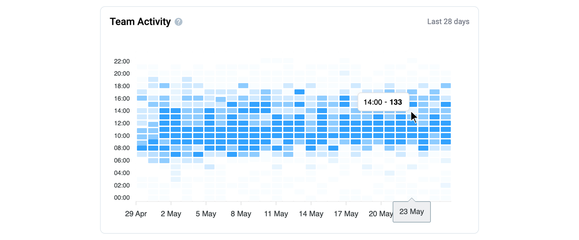 * Quickly identify high-activity and low-activity days across the team.