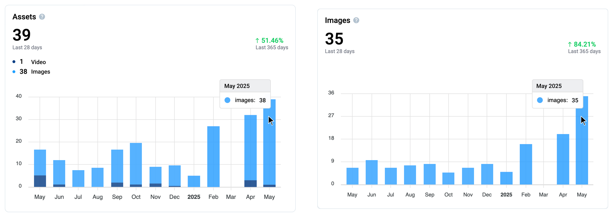 **Note**: On this chart, only the asset types that are actually present in the team's projects are included in the totals. If the team works with only one type of asset - for example, images - then only those will be counted in this section. In such cases, the section will be titled accordingly (e.g., "Images" instead of "Assets").