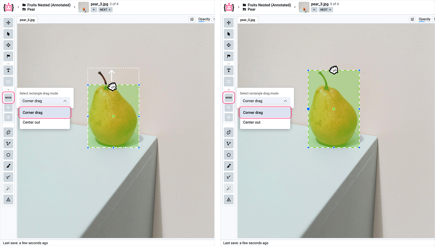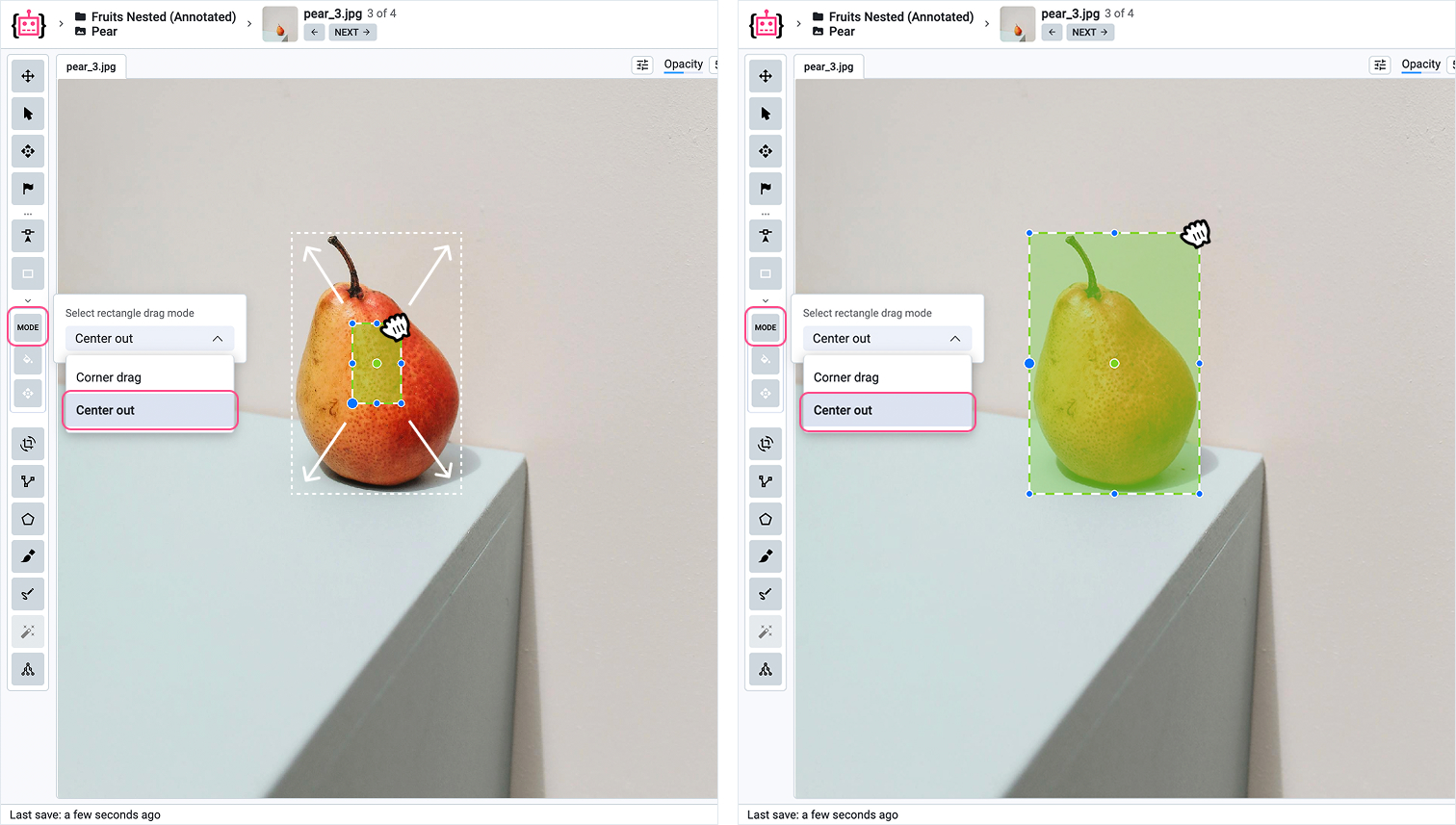 1. Click the **Rectangle Icon** in the toolbar of the labeling interface.