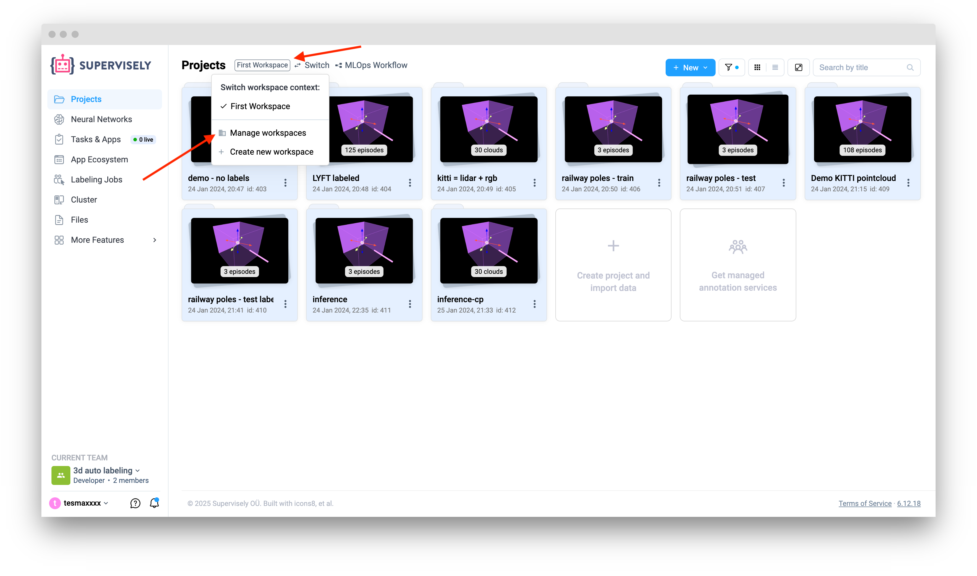 `WORKSPACE ID` can be obtained from Projects page on the platform: